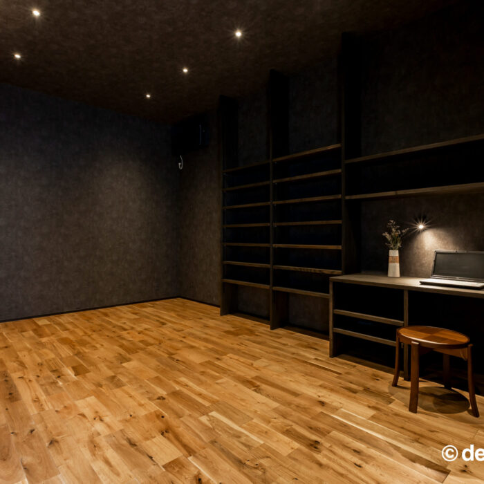 完全防音のダークトーン空間。音楽、映画、読書、仕事。