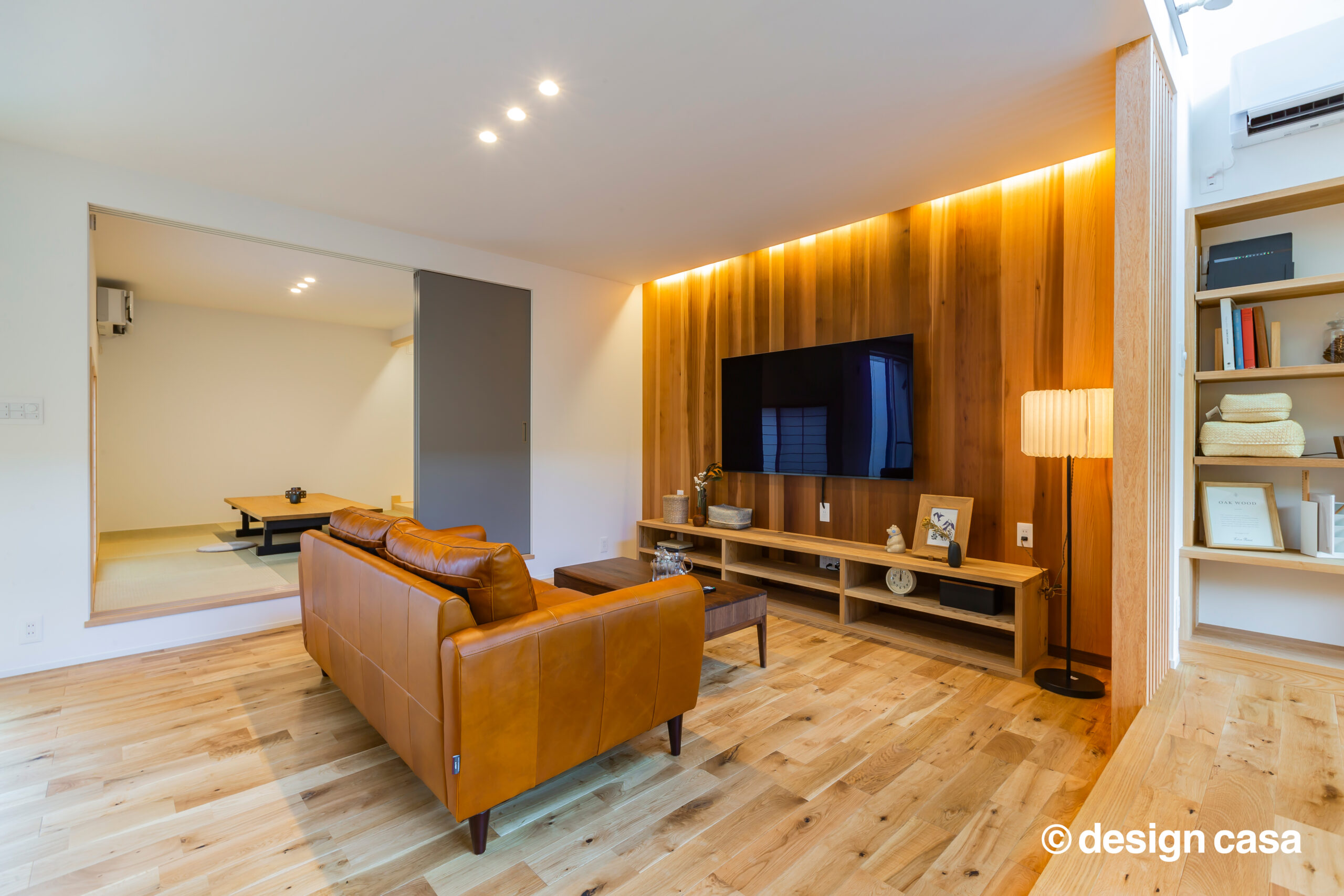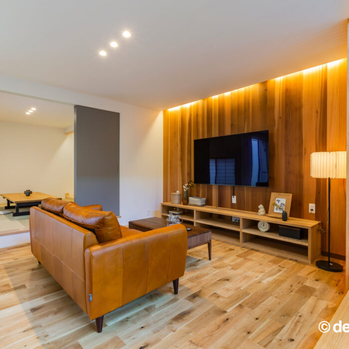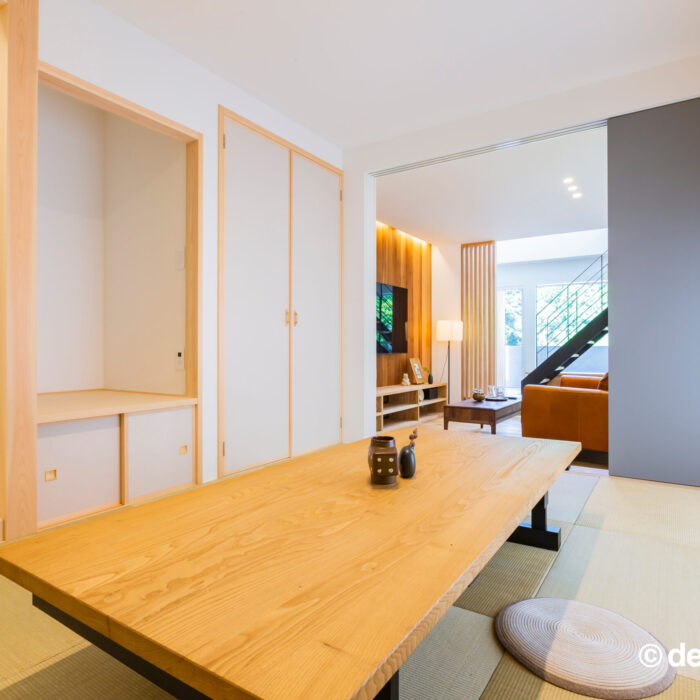 隣接する和室は一段上がり、囲まれ感のある落ち着いた空間に。