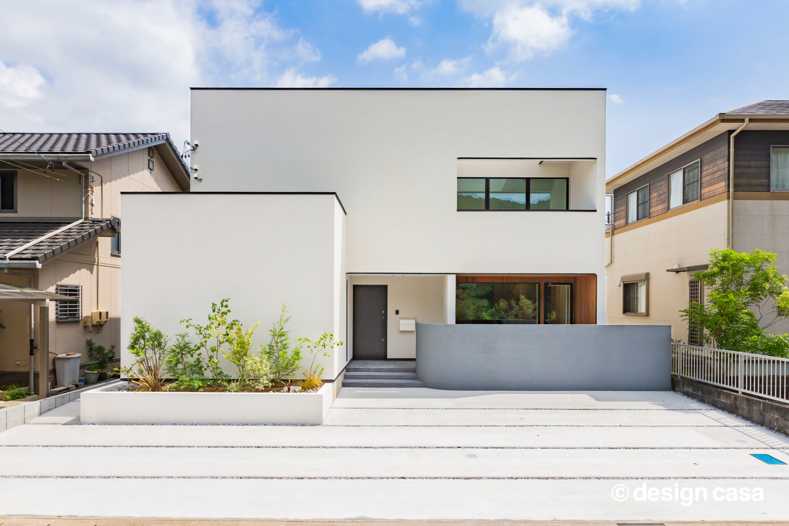 街並みに溶け込みながらも、内側には豊かな時間を抱えた住まいです。
