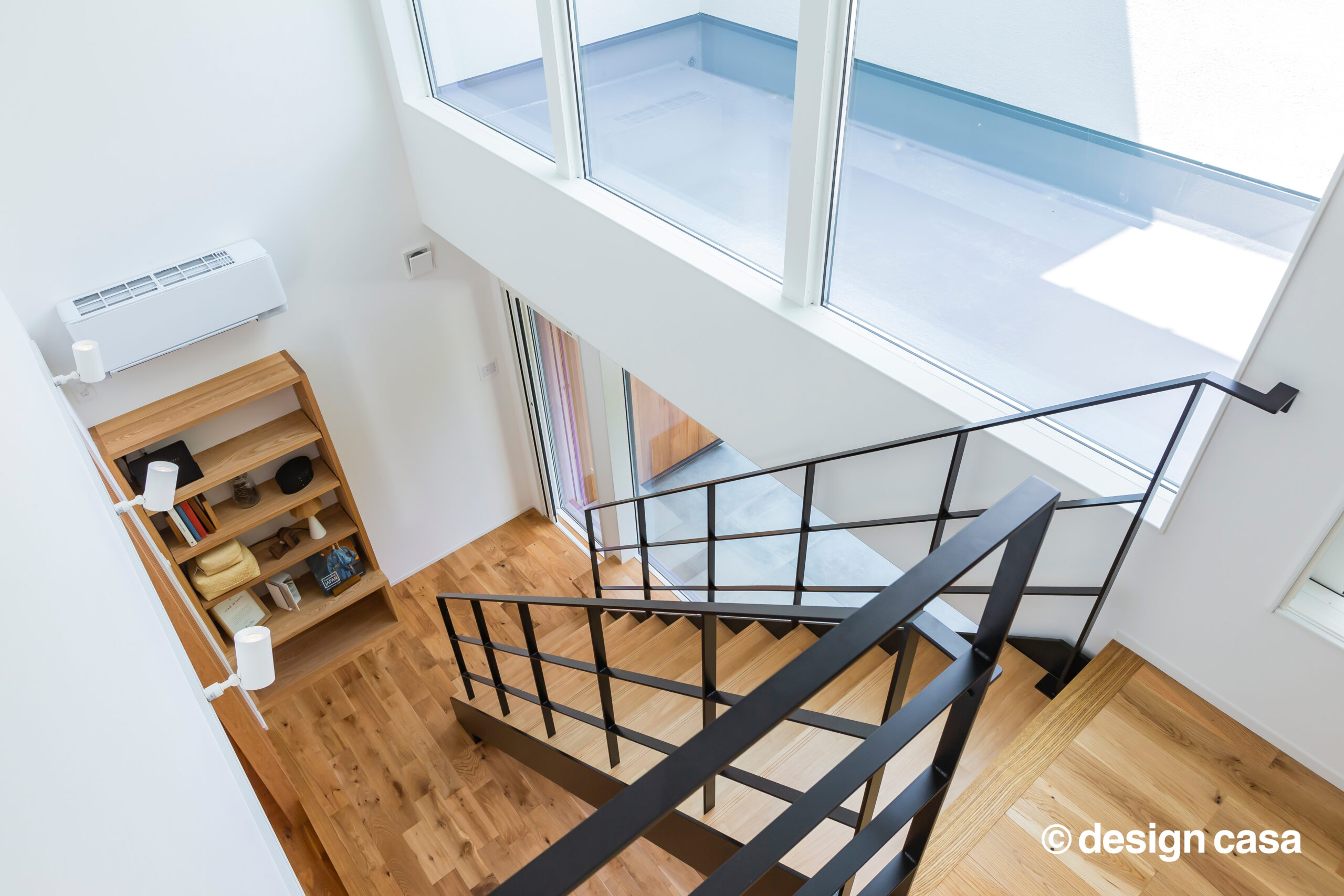 階段途中の中二階に配置することで天井高を確保。没入するための静寂がここにあります。