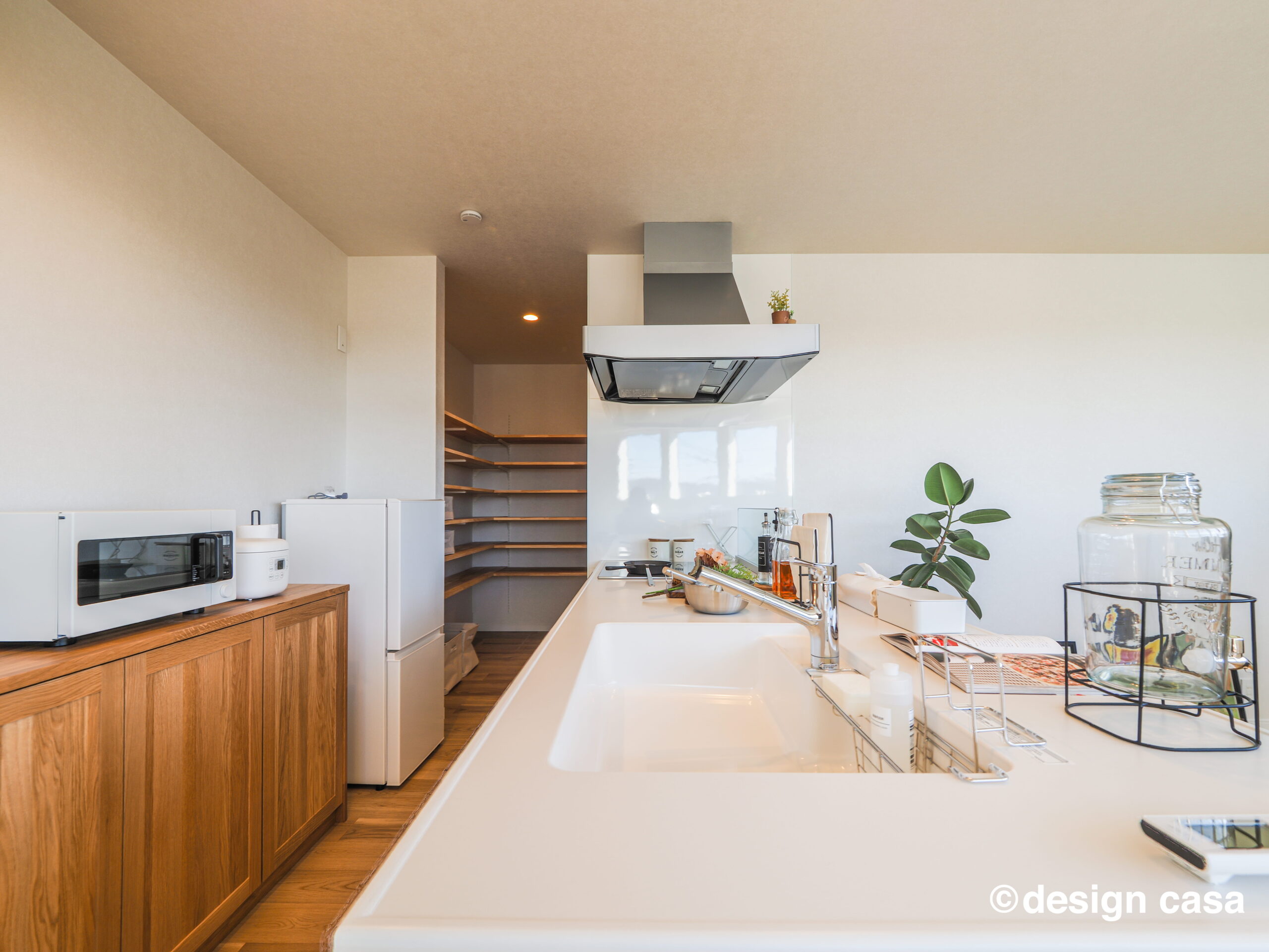 背面には十分な収納とパントリーを確保。