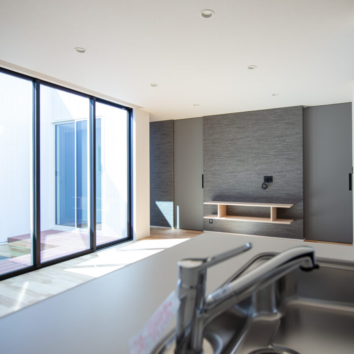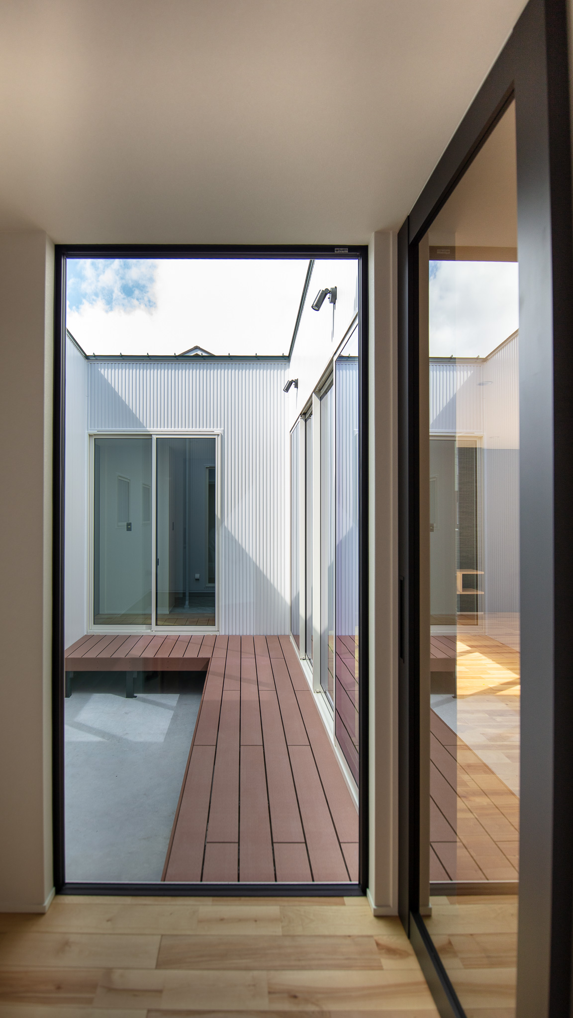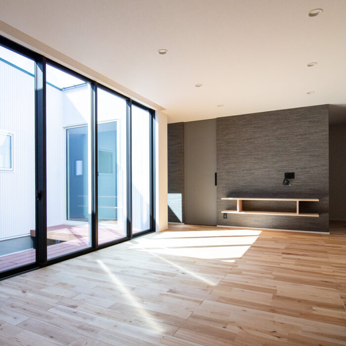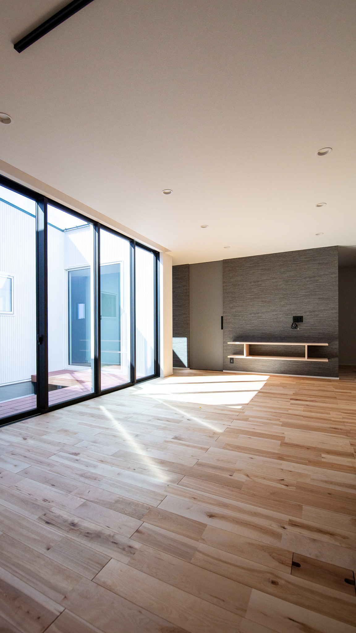 中庭に面した大きな窓からやわらかな光が差し込み、外からの視線を気にせず開放感を楽しめます。