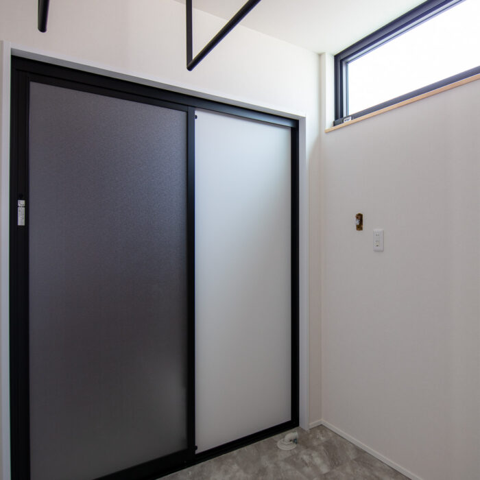 グレーの床が空間を引き締め、玄関まわりがいつもすっきり整う設計になっています。