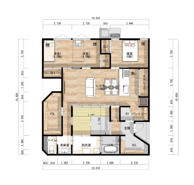 生活空間がワンフロアにつながり、家族の距離もほどよく近くなる。